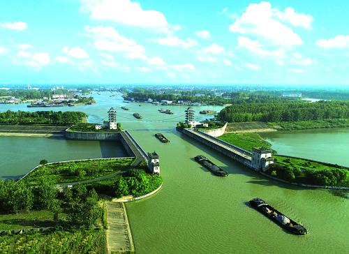 京杭大运河与淮河入海水道在淮安立体交叉,形成“水上立交” 陈光晰摄